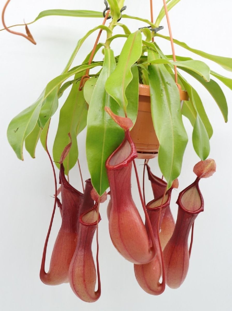La Nepenthes alata è una pianta carnivora parte della famiglia delle Nepentaceae, nativa delle foreste equatoriali del Borneo e delle Filippine. Caratterizzata da foglie con una sacca pendente alla loro estremità, che funziona come una trappola per gli insetti. Le vittime, attratte da una sostanza zuccherina nelle sacche e dai colori vivaci della pianta, scivolano all’interno di esse, dove si trovano delle ghiandole che producono enzimi speciali per la digestione. Queste piante possono raggiungere dimensioni significative in natura e hanno radici aeree che permettono loro di crescere attaccate agli alberi.