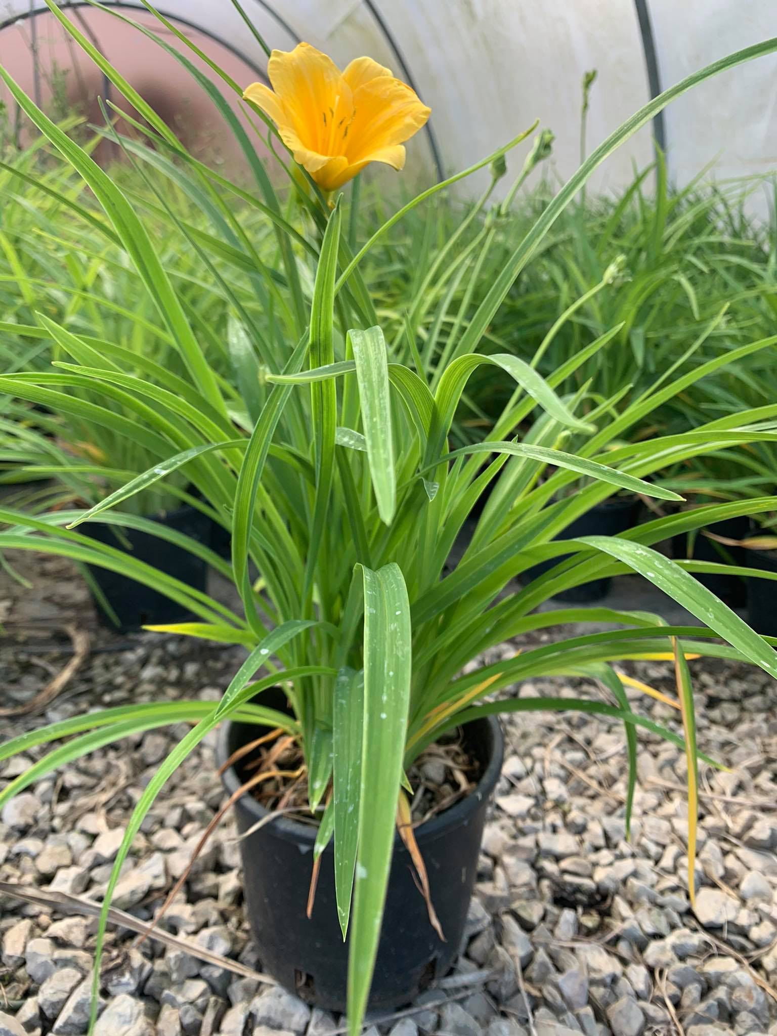 Hemerocallis ‘Stella de Oro’ è una varietà nana e rifiorente del giglio di giorno (daylily), famosa per la sua fioritura abbondante e prolungata da giugno fino a settembre, con cicli continui di fioritura. I fiori sono giallo dorato intenso, a forma di trombetta, larghi circa 5–7 cm e leggermente profumati. Ogni fiore dura un solo giorno, ma la pianta ne produce continuamente, per un effetto scenografico e luminoso per tutta la stagione calda.